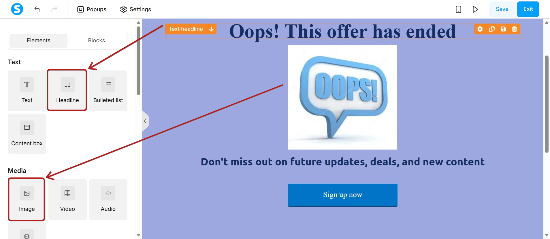 Για να το κάνετε αυτό, προσθέστε κείμενο, εικόνες και ένα κουμπί με σύνδεσμο ανακατεύθυνσης που θα τους οδηγεί στη σελίδα opt-in σας.