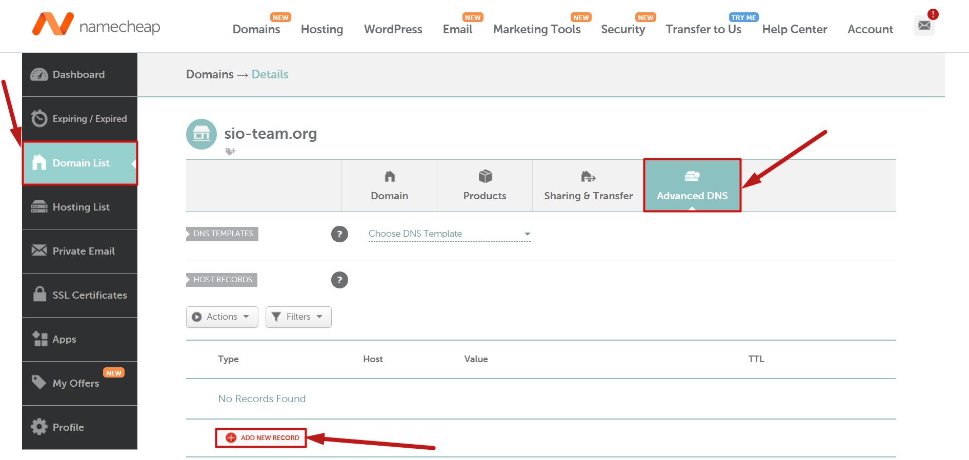 - Κάντε κλικ στην καρτέλα Advanced DNS του ονόματος χώρου σας.
