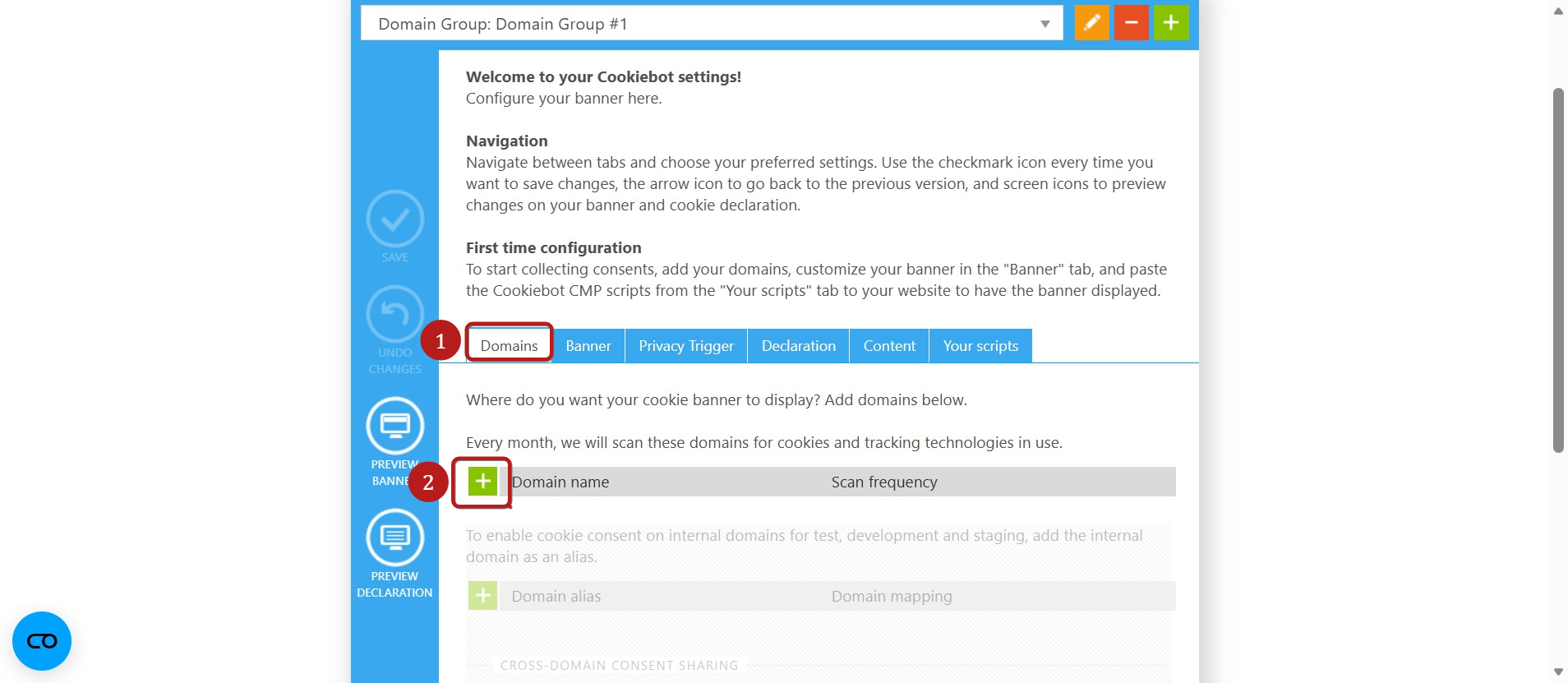 Σημείωση: Το δωρεάν πλάνο του Cookiebot σάς επιτρέπει να προσθέσετε μόνο ένα όνομα χώρου (domain name).