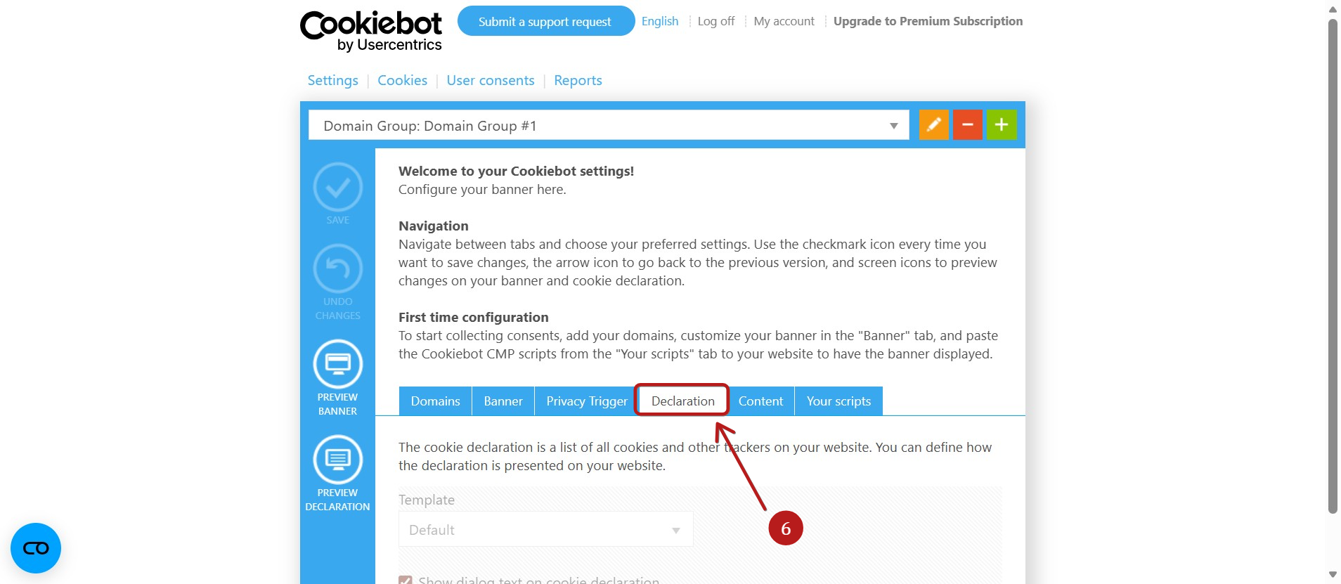 - Η καρτέλα Declaration είναι διαθέσιμη μόνο για χρήστες με πληρωμένο πλάνο (6). Σας επιτρέπει να εμφανίζετε αυτόματα λεπτομερείς πληροφορίες για τα cookies.