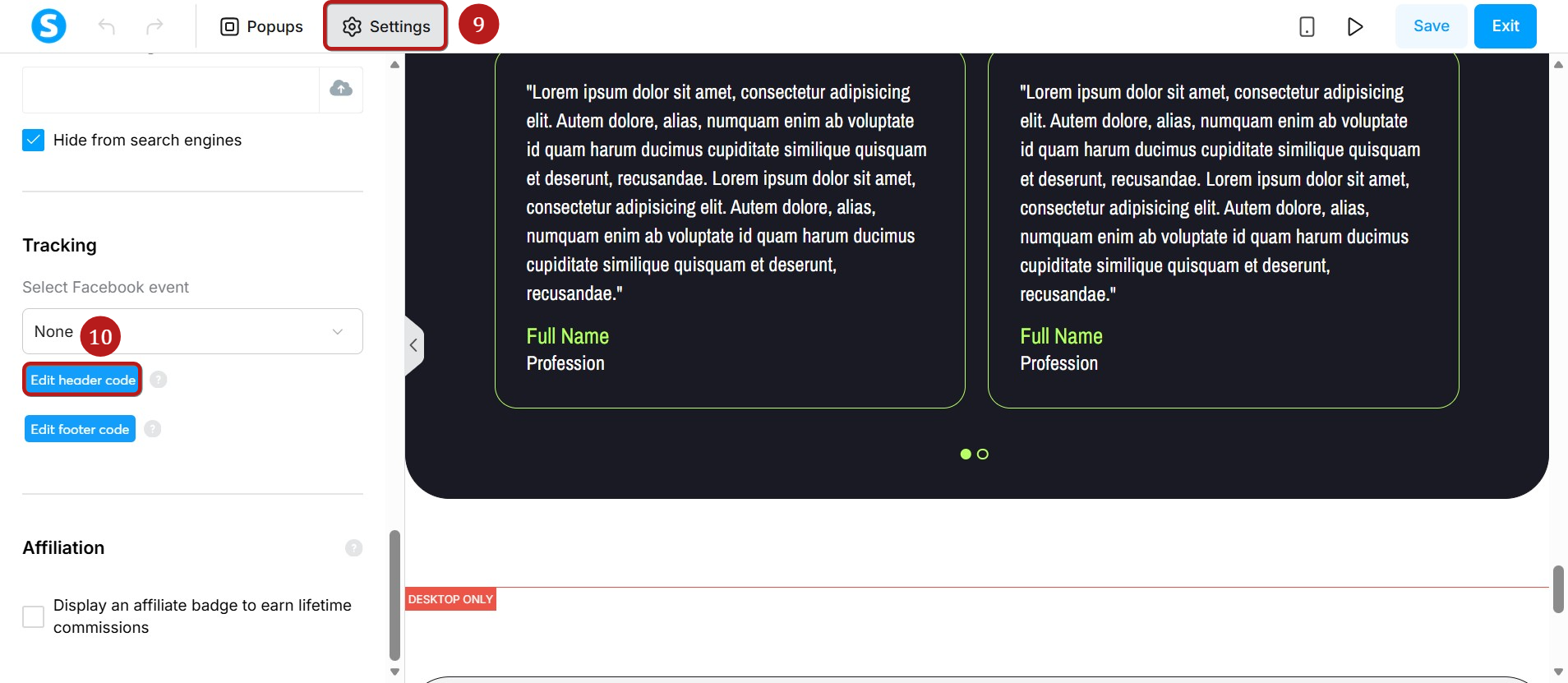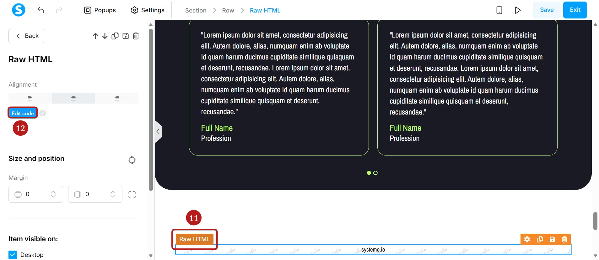 - Το δεύτερο σενάριο πρέπει να προστεθεί ως στοιχείο HTML στη συγκεκριμένη σελίδα όπου θέλετε να εμφανίζεται η δήλωση cookies (11 & 12).