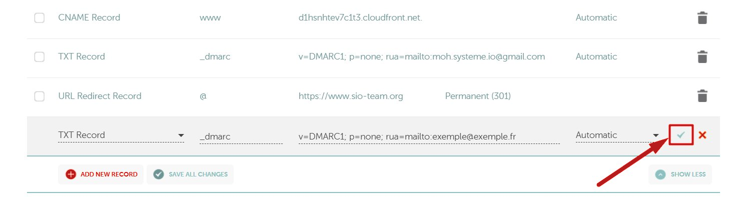 1. Πρέπει να έχετε μόνο μία εγγραφή DMARC στις ρυθμίσεις DNS σας. Εάν έχετε ήδη μία, αφαιρέστε την πριν προσθέσετε τη νέα εγγραφή.