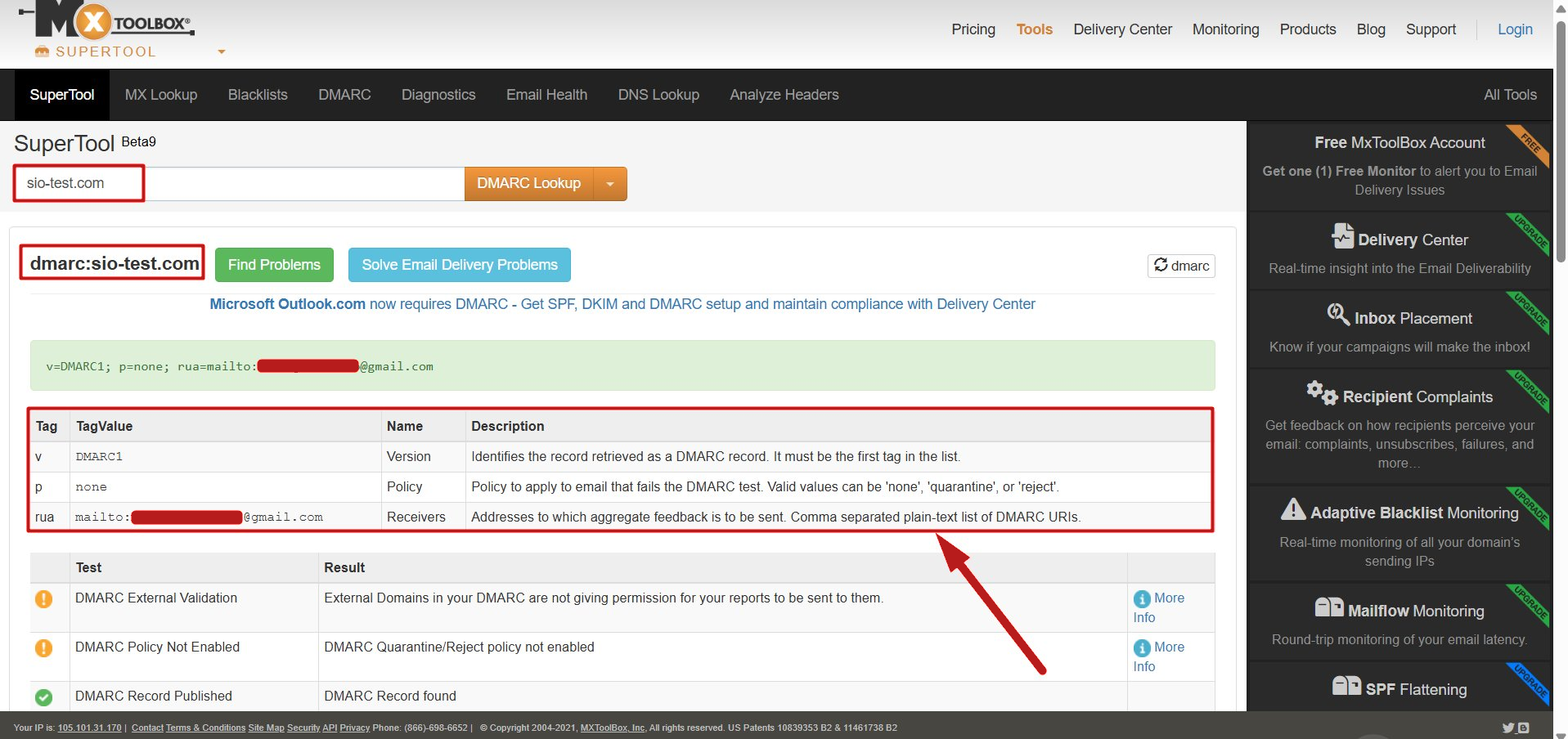 4. Μπορείτε να επαληθεύσετε ότι η εγγραφή DMARC έχει ρυθμιστεί σωστά αναζητώντας το domain σας στο https://mxtoolbox.com/dmarc.aspx