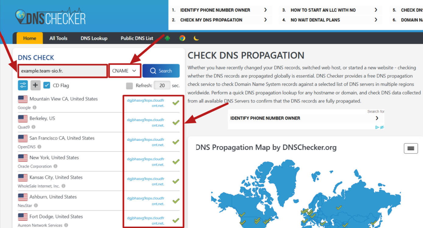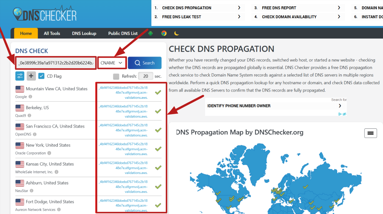 Μόλις οι δύο εγγραφές CNAME προστεθούν επιτυχώς στον πάροχό σας, μπορείτε να ελέγξετε την κατάστασή τους χρησιμοποιώντας το ακόλουθο εργαλείο: https://dnschecker.org
