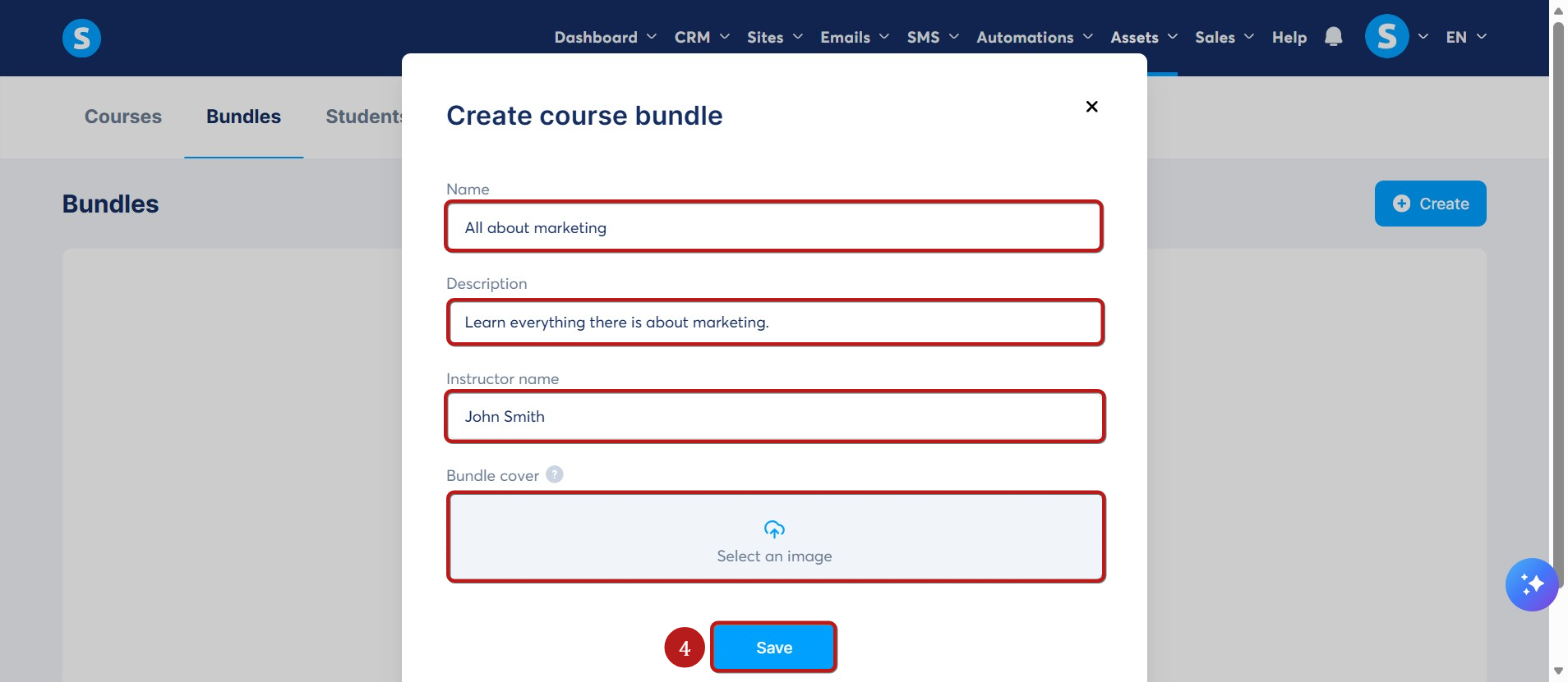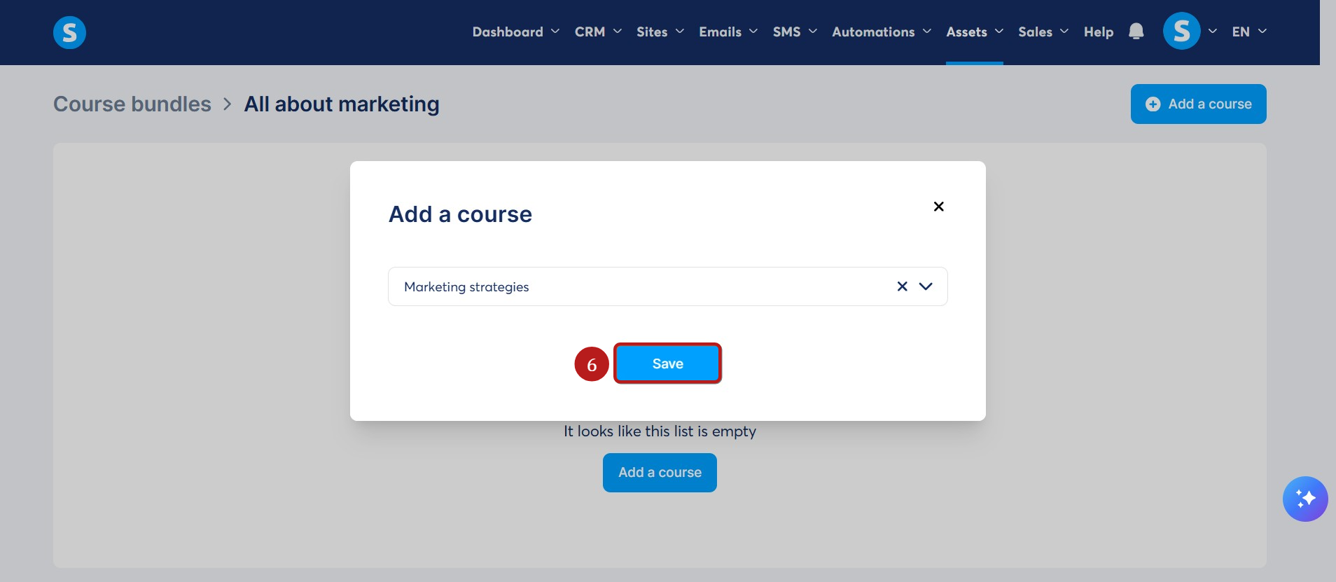 Επιλέξτε τα μαθήματα για να δημιουργήσετε το πακέτο σας και αποθηκεύστε κάνοντας κλικ στο Αποθήκευση (6).