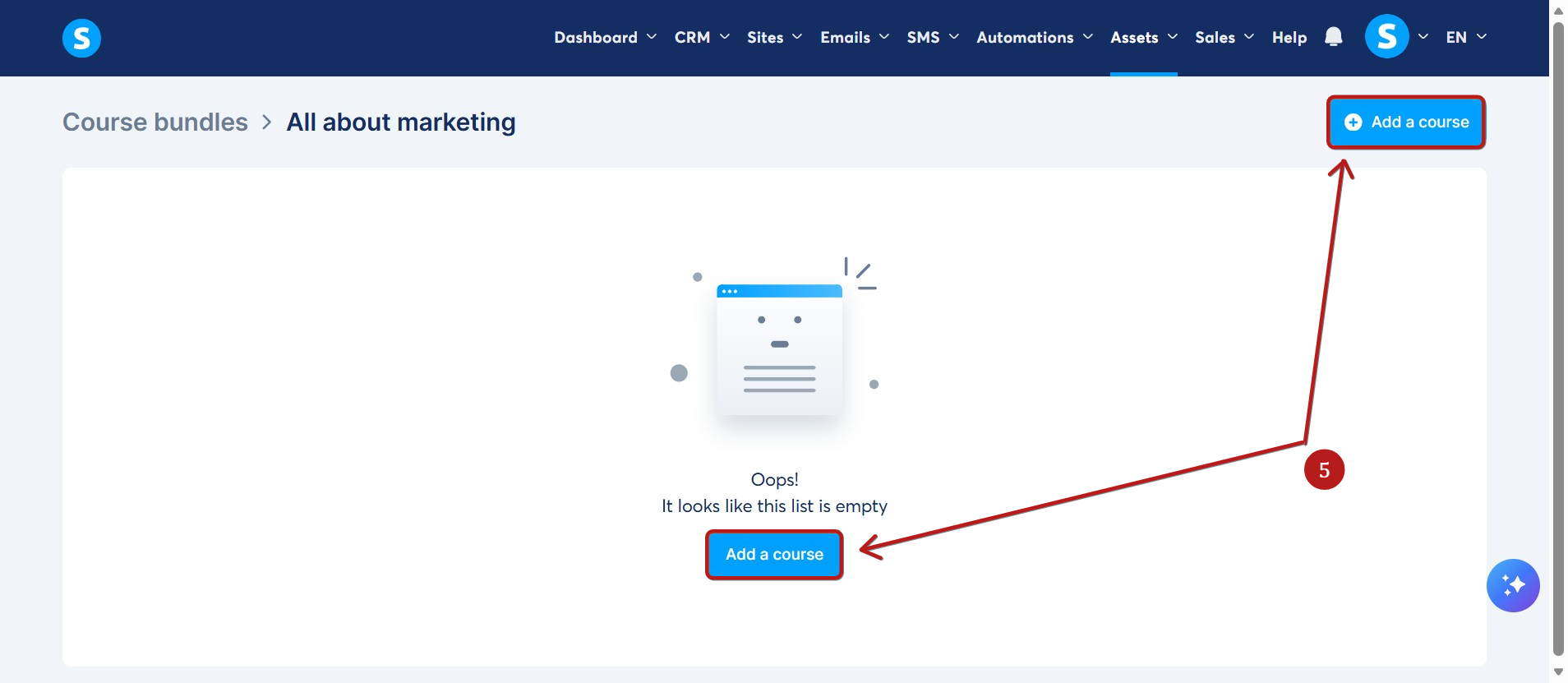 Κάντε κλικ στο πακέτο μαθημάτων που δημιουργήσατε και μετά κάντε κλικ στο Προσθήκη μαθήματος (5).