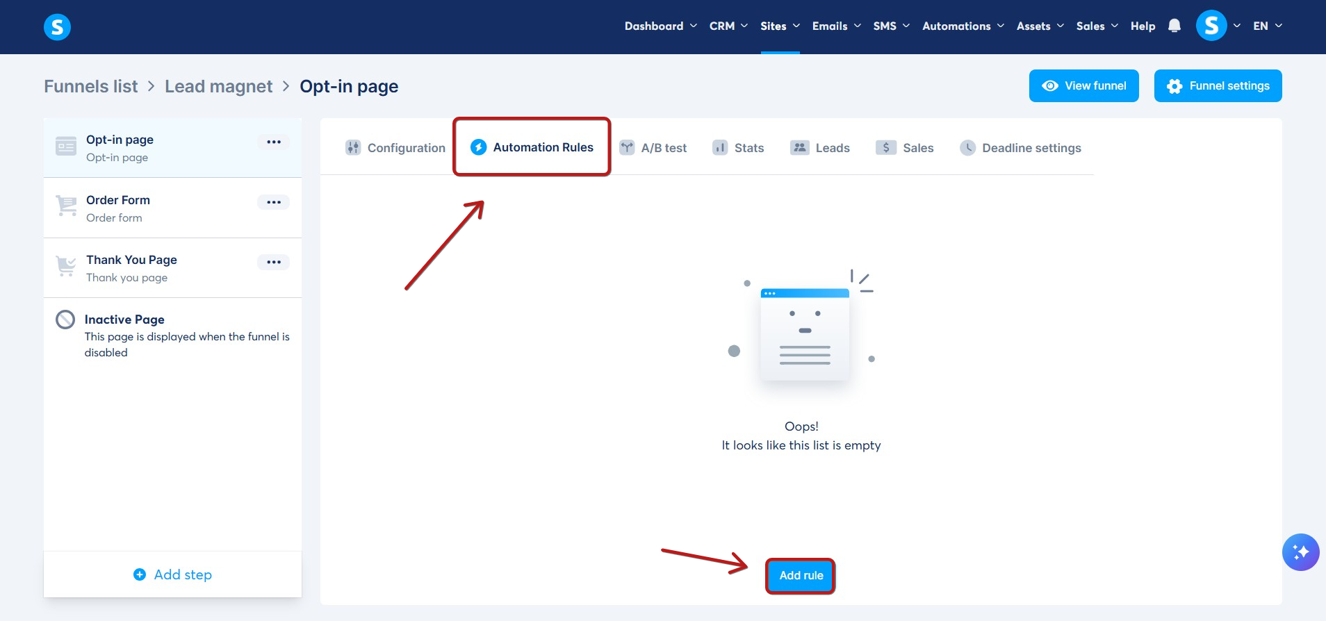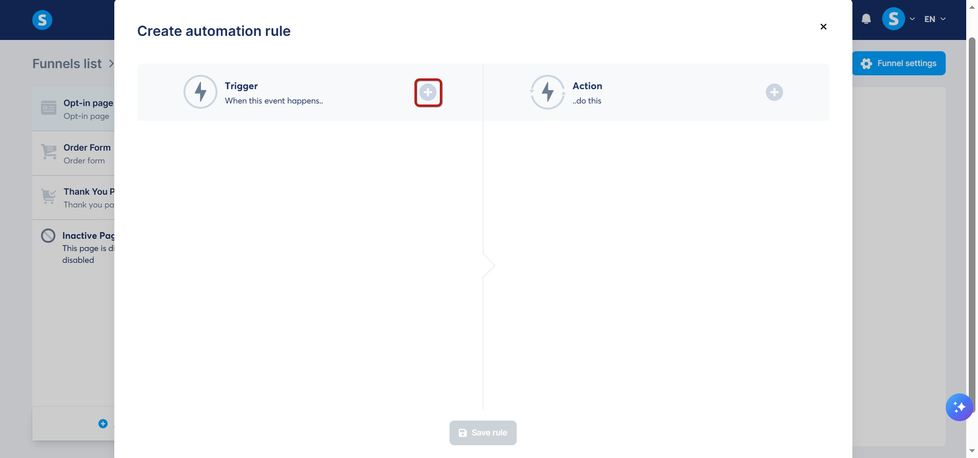 Κλείστε το πρόγραμμα επεξεργασίας και ανοίξτε την καρτέλα Αυτοματισμοί στην ίδια σελίδα. Κάντε κλικ στο κουμπί Προσθήκη κανόνα.
