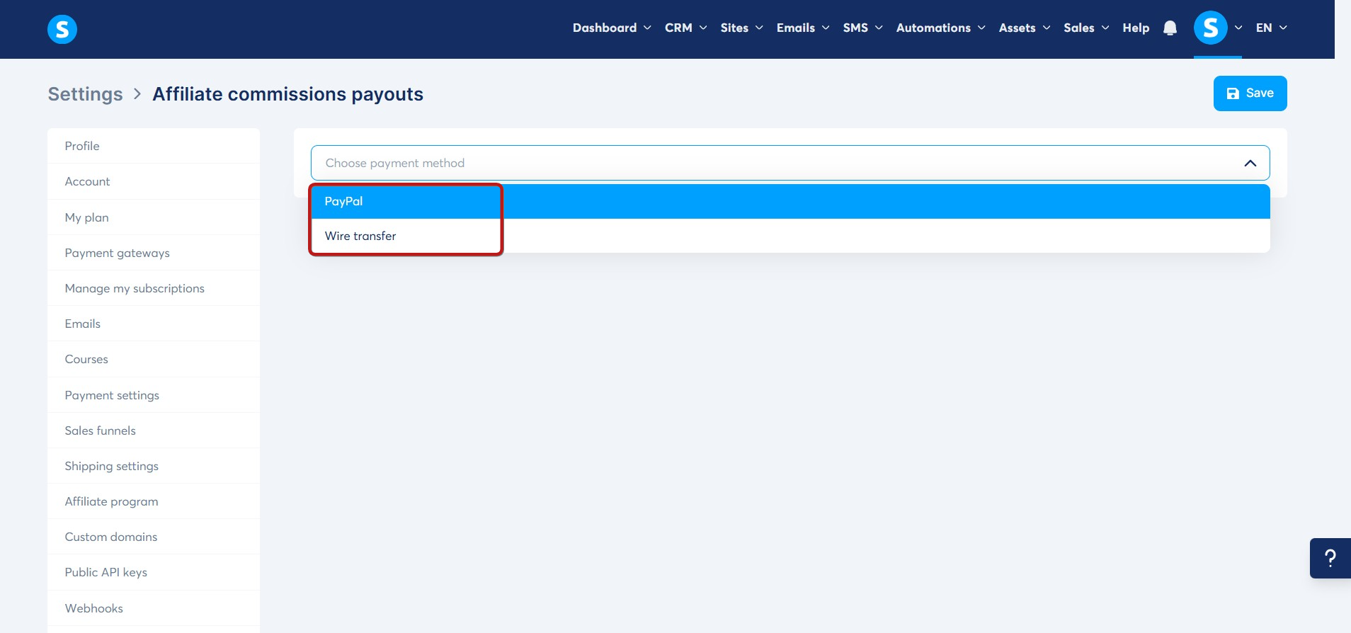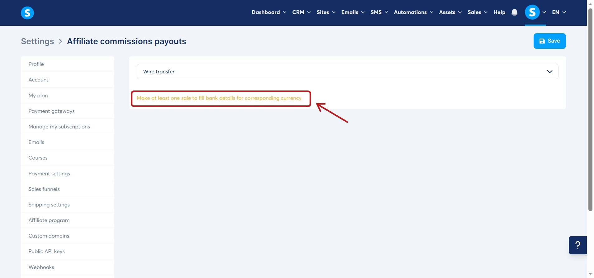Εάν δεν έχετε πραγματοποιήσει ακόμα καμία πώληση ως συνεργάτης, δεν θα μπορείτε να επιλέξετε το Wire Transfer ως μέθοδο πληρωμής.