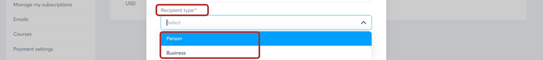 Έπειτα, πρέπει να επιλέξετε έναν τύπο παραλήπτη: Person (personal) ή Business